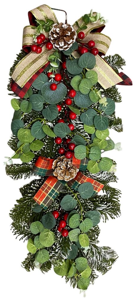 Świąteczny stroik 3587 podłużny z szyszkami i jarzębiną 65x25cm Elegancki, podłużny stroik o wymiarach 65x25cm jest idealnym dodatkiem do Twojego świątecznego wystroju, zarówno na stół, jak i na drzwi. Jego naturalne piękno i świąteczny urok sprawiają, że wnętrze nabiera wyjątkowego, …