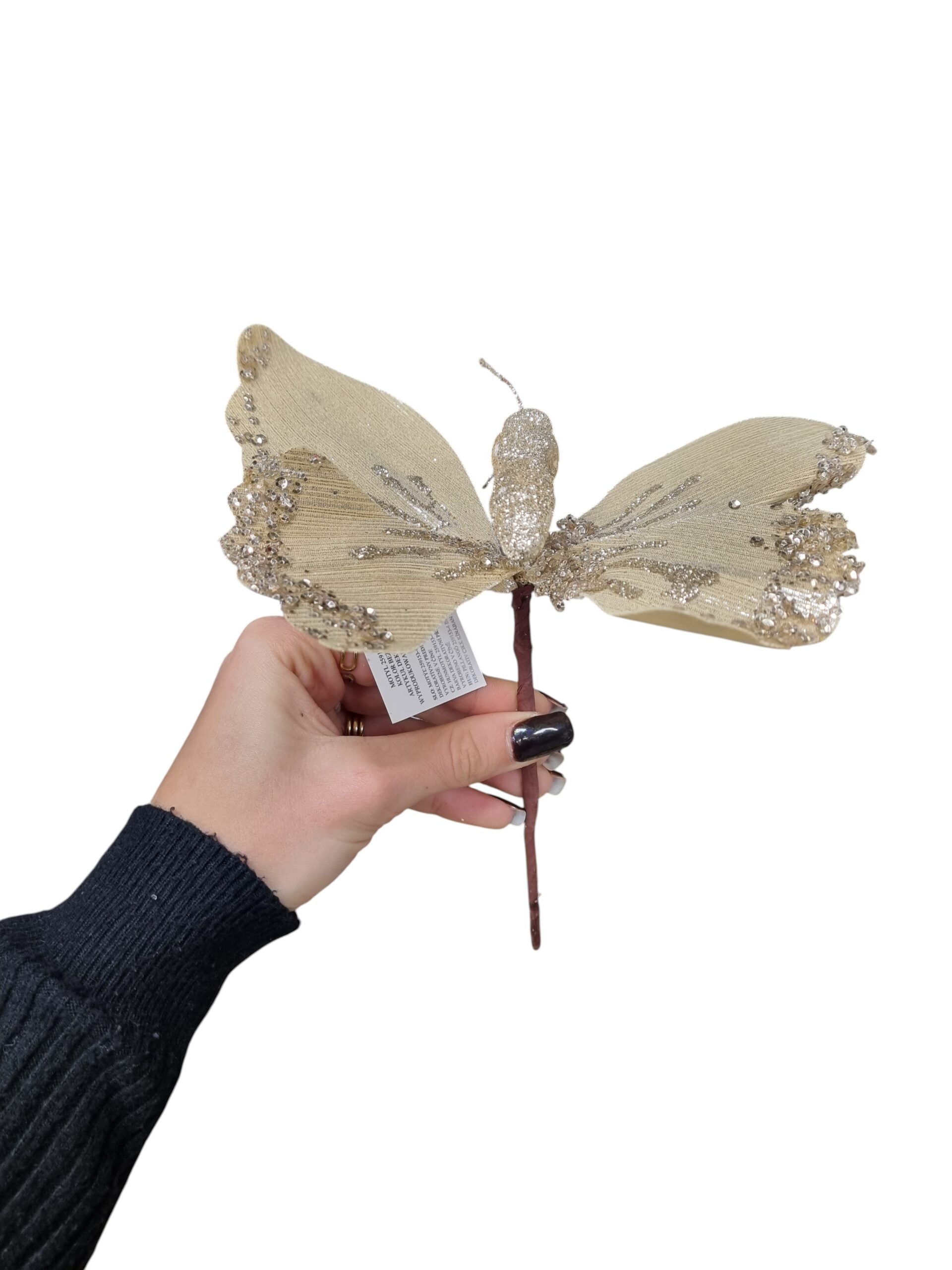 MOTYL BROKATOWY 23cm 259153-4 CHOINKA OZDOBA STROIK NA WESELE DEKORACJE