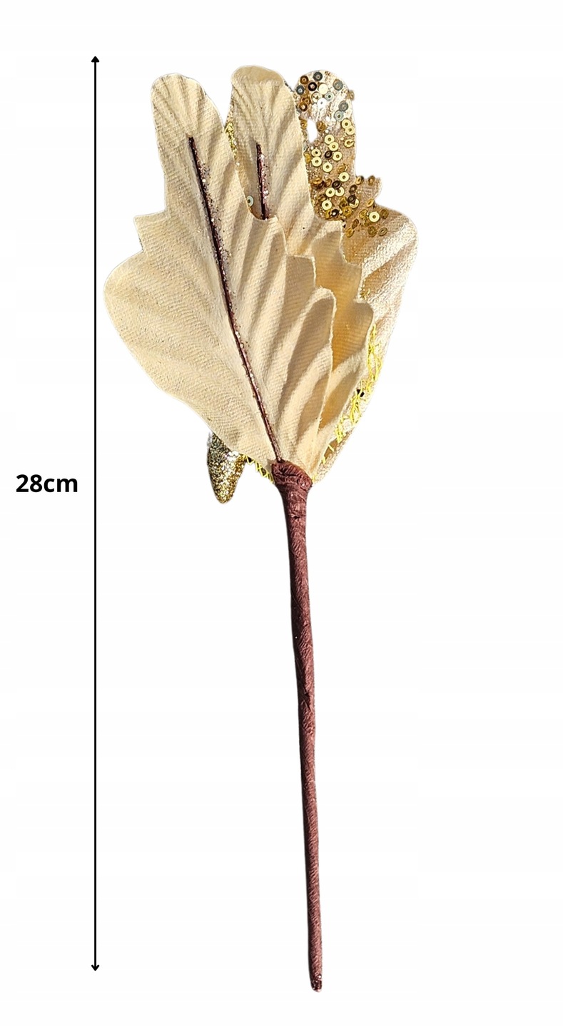 LIŚĆ AŻUROWY BEŻOWY Gałązka twarda a zarazem plastyczna dzięki czemu liść można dowolnie kształtować, Długość gałązki – 55 cm Szerokość ok. 21 cm Kolor: beżowy Liść wykonany z dobrej jakości materiału, gumowy, z połyskiem co daje bardzo naturalny efekt. Odcień …
