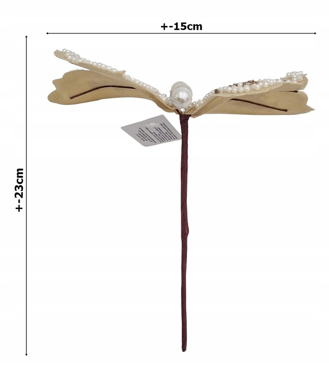 MOTYL PERŁY- BEŻOWY 259153-5 Kwiat wykonany z bardzo dobrej jakości materiału welurowego, miękkiego i przyjemnego w dotyku pokrytego pięknie mieniąca się brokatem. Dzięki przedłużonej łodydze, można w dowolny sposób umieścić kwiat w stroiku, czy na choince. Sam w sobie stanowi …