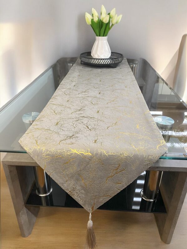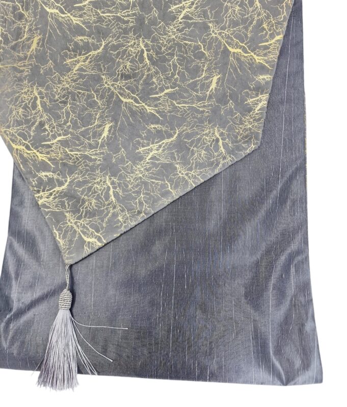 Sprawdzi się świetnie jako element dekoracyjny jak również skutecznie ochroni meble przed zniszczeniem oraz gorącymi talerzami i kubkami. Przydatny w jadalni, kuchni i na tarasie gdzie spełnia funkcję praktyczną oraz dekoracyjną. Bieżnik ma trójkątne zakończenie z dodatkiem w postaci ozdobnego frędzla. Widoczny na zdjęciach wzór znajduje się po jednej stronie bieżnika, druga jest całkowicie gładka.