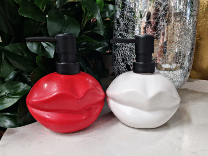 Oryginalny i stylowy dozownik w kształcie ust, który świetnie sprawdzi się w łazience lub kuchni. Wykonany z trwałego tworzywa, wyposażony w wygodną pompkę umożliwiającą łatwe dozowanie mydła, żelu pod prysznic, płynu do naczyń czy balsamu.
