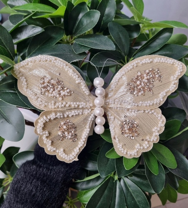 Kwiat wykonany z bardzo dobrej jakości materiału welurowego, miękkiego i przyjemnego w dotyku pokrytego pięknie mieniąca się brokatem.