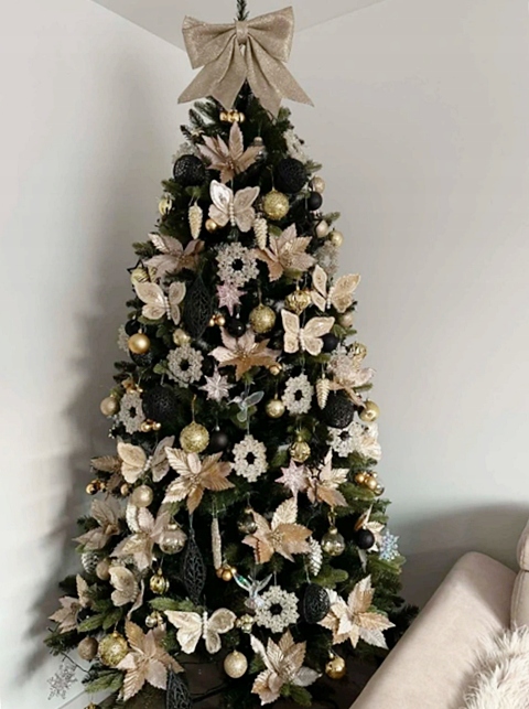 Wystarczy kilka kwiatów, by udekorować dużą choinkę.