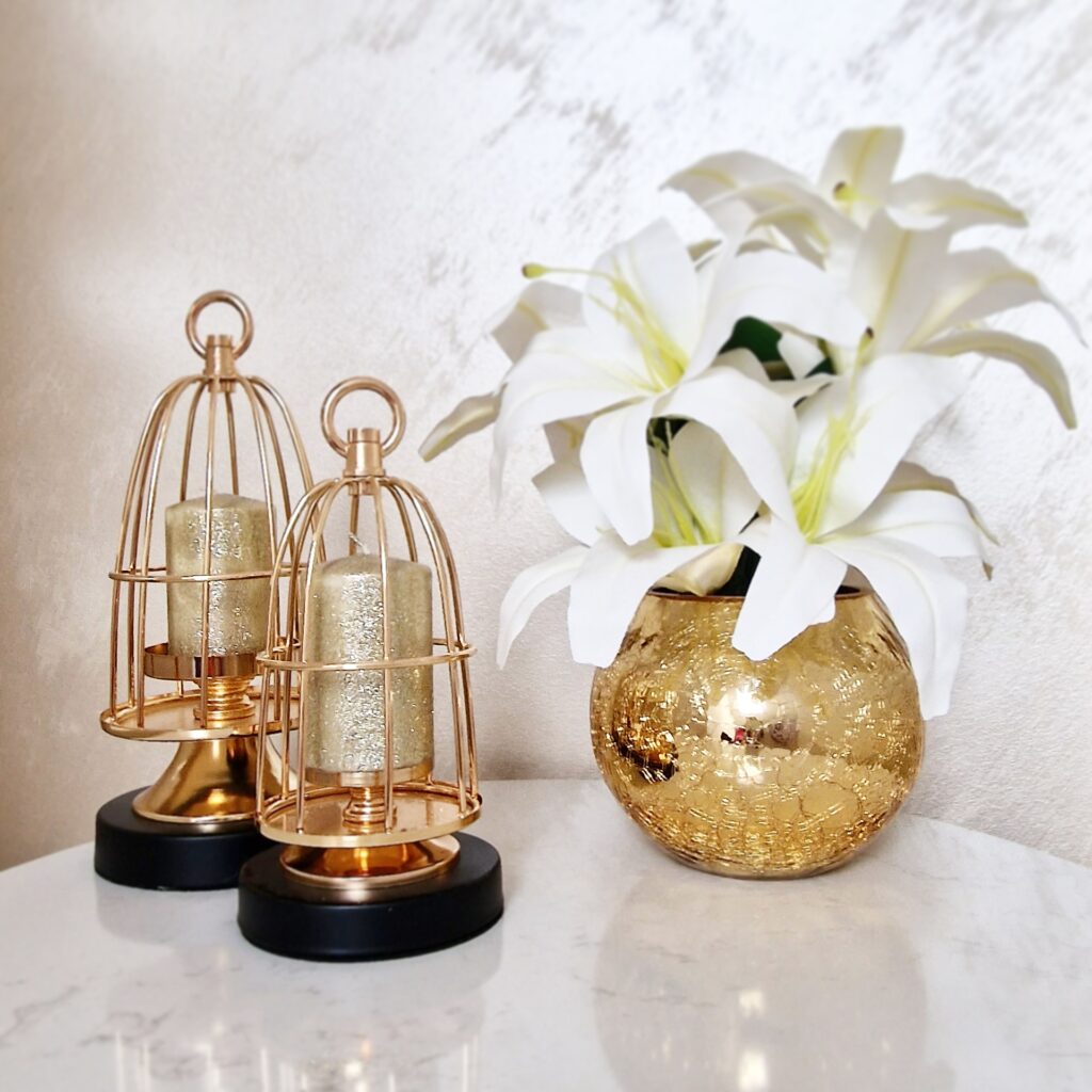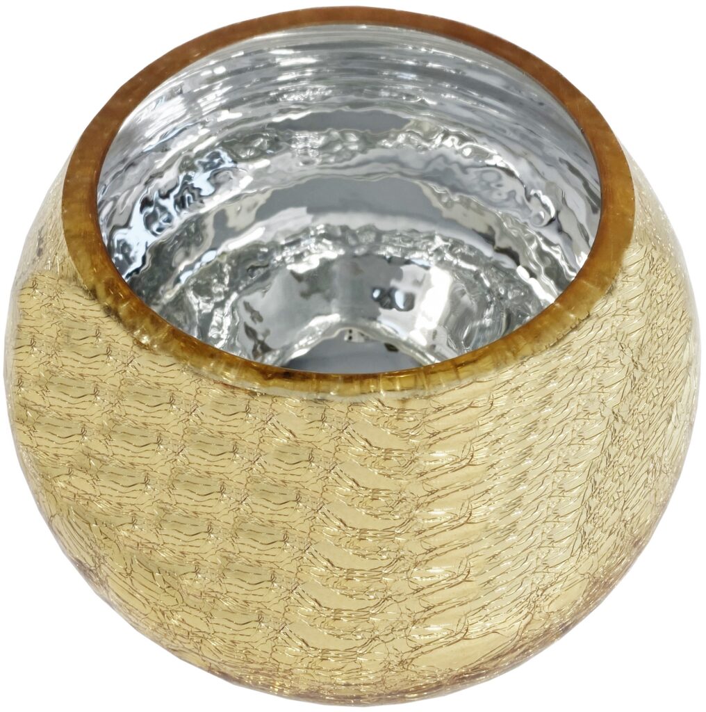 Jej powierzchnię pokrywa złote lustro ze strukturą potłuczonego szkła, co tworzy wyjątkowy i niepowtarzalny efekt odbicia .