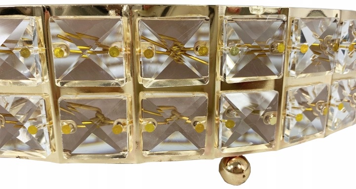 Patera została ozdobiona efektownymi, kryształowymi elementami w złotej oprawie, które pięknie odbijają światło i przyciągają wzrok. Lustrzana powierzchnia dodatkowo podkreśla jej elegancki charakter.