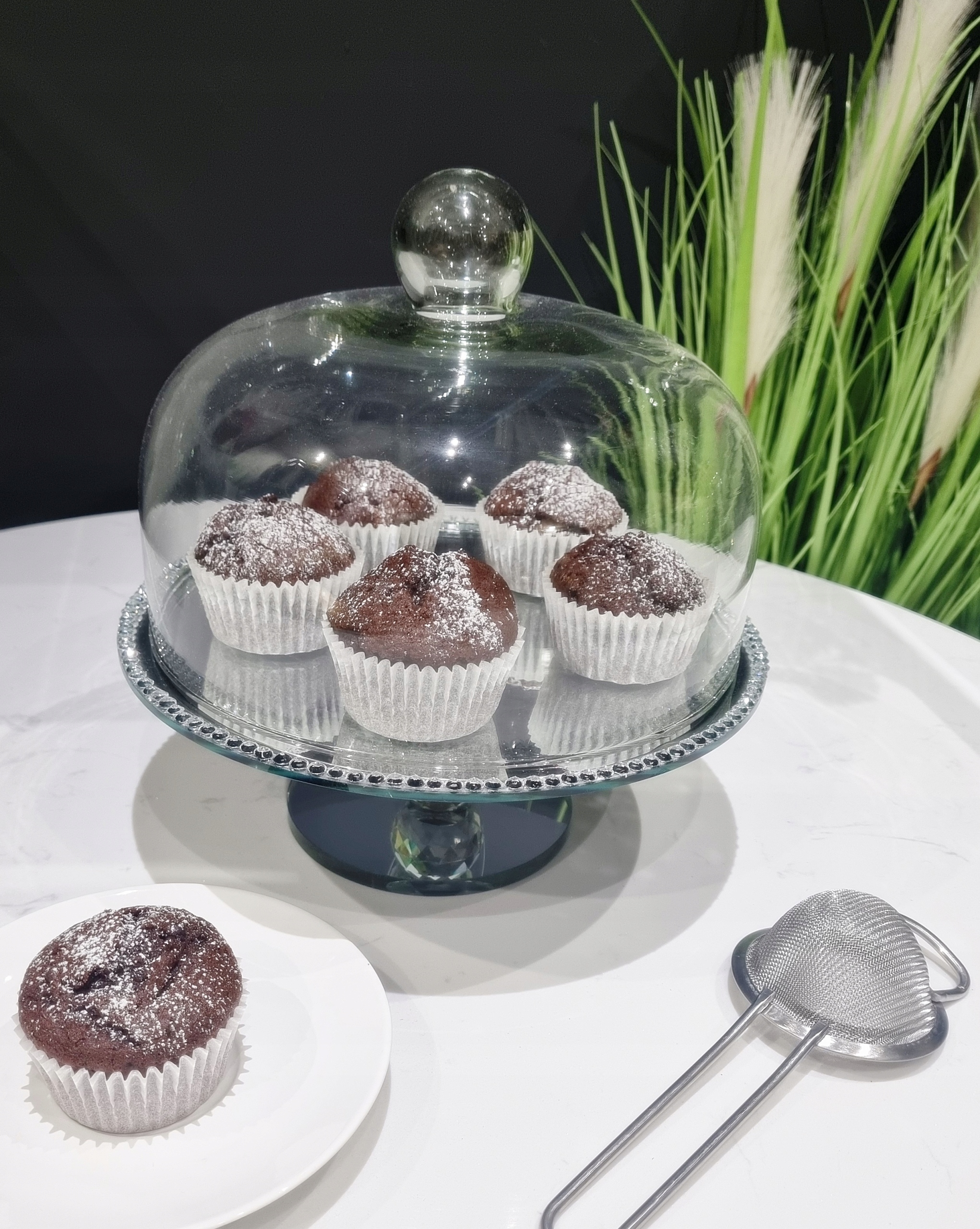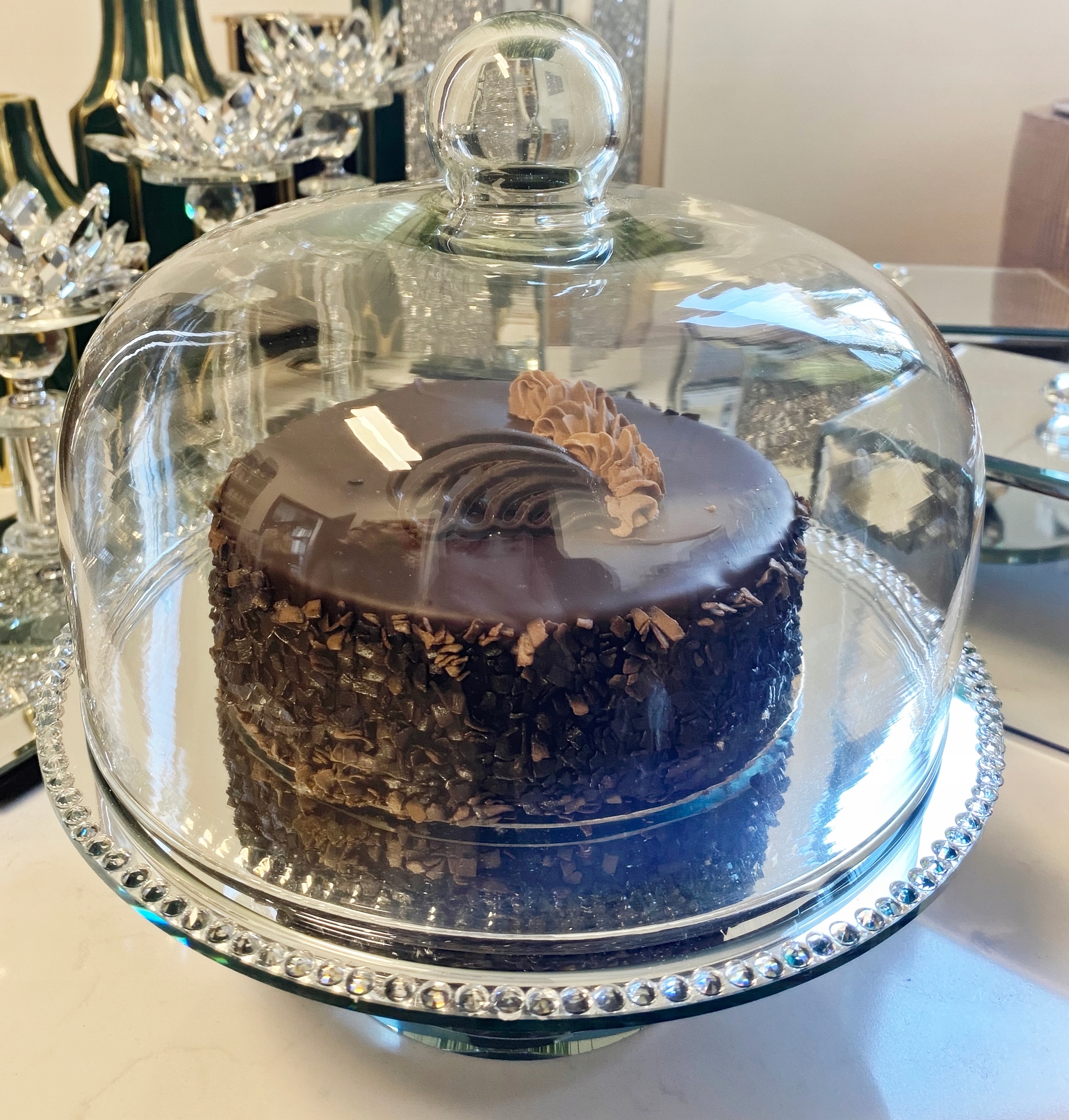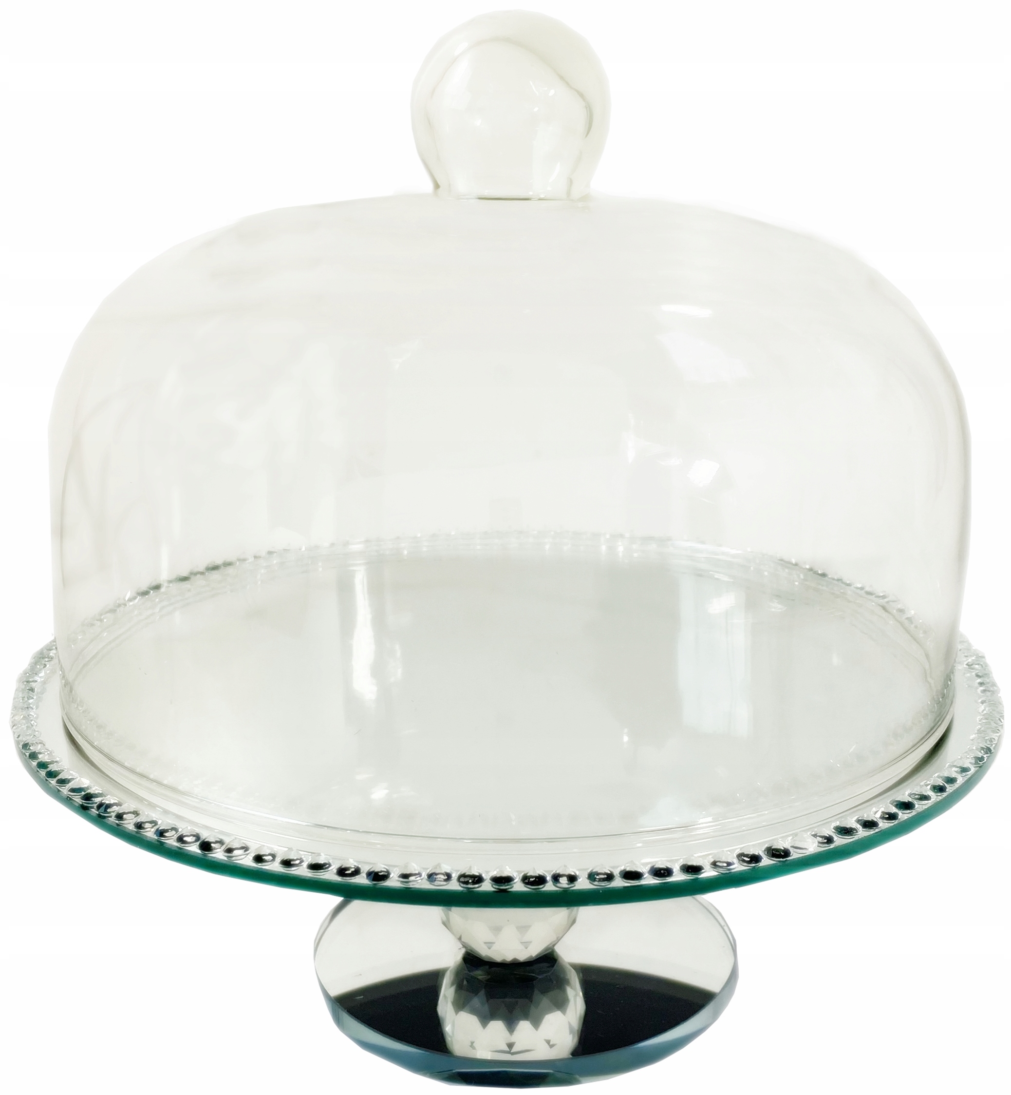 PATERA SZKLANA – LUSTRZANA Z KRYSZTAŁOWYMI ZDOBIENIAMI I KLOSZEM