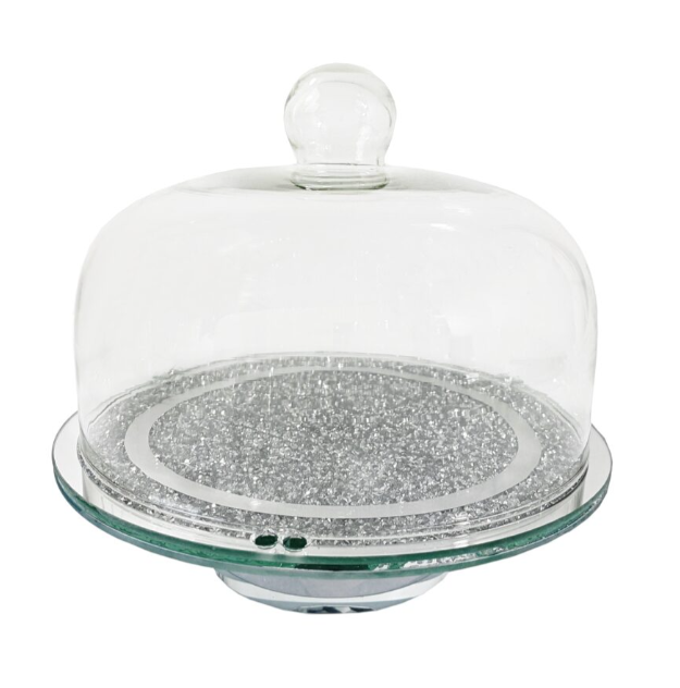 PATERA SZKLANA – LUSTRZANA Z KRYSZTAŁOWYMI ZDOBIENIAMI I KLOSZEM