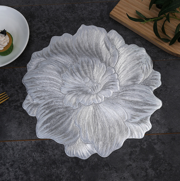 Podkładka o średnicy +/- 38 cm. Tył podkładki w kolorze jasnoszarym.