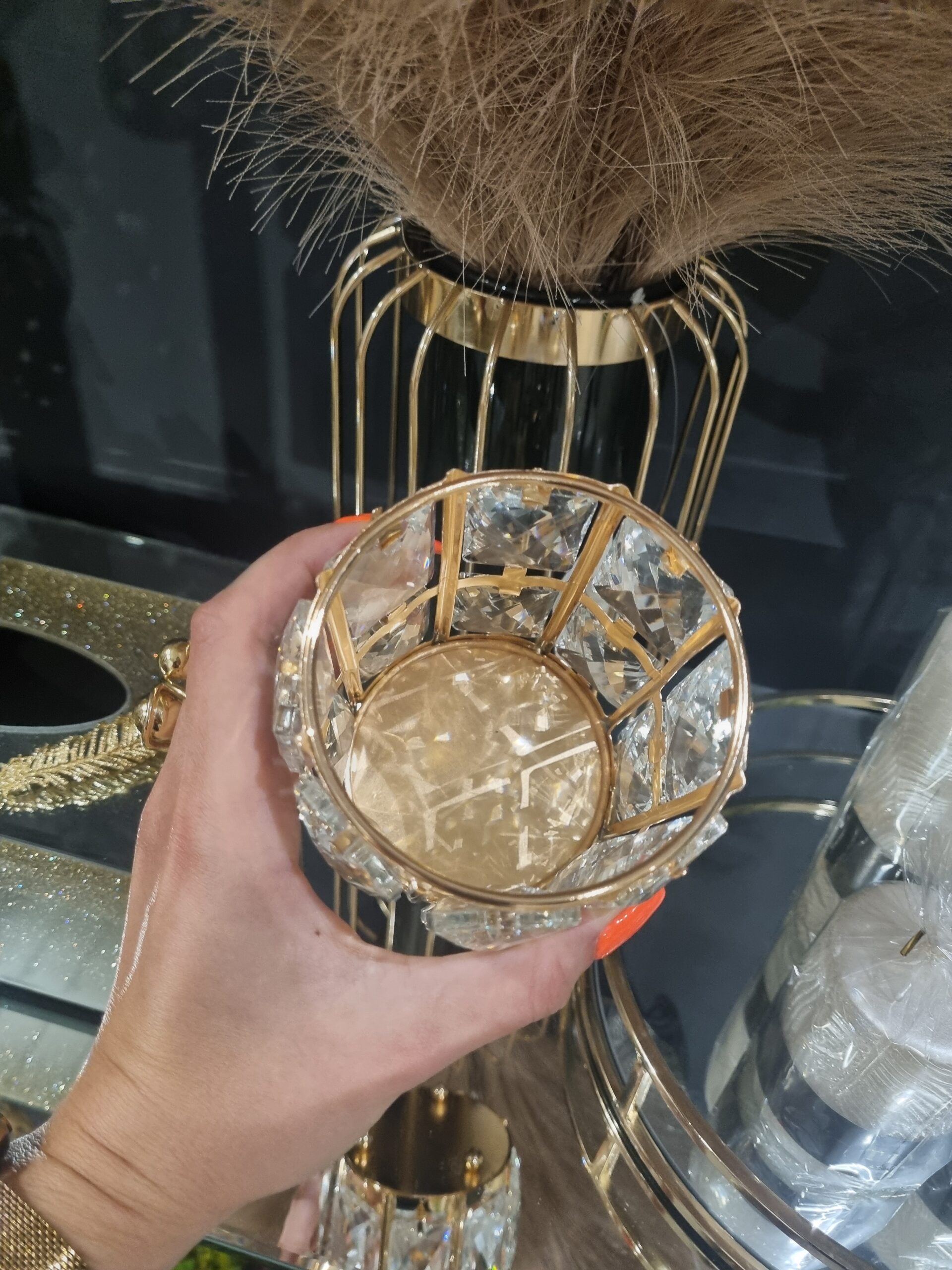 Kryształki, które znajdują się w pojemniku są bardzo efektowne i pięknie prezentują się zarówno w przestrzeni domowej jak i publicznej.