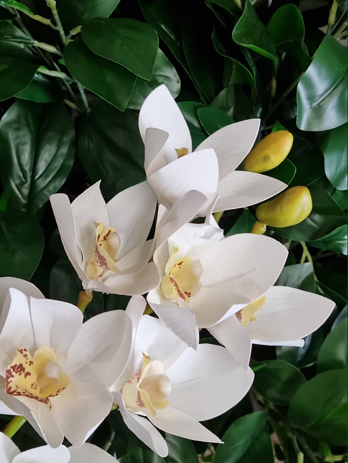 Doskonała imitacja żywej rośliny odmiany storczyk.