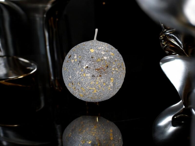 Świeca parafinowa GLAMOUR kula 8cm srebrna