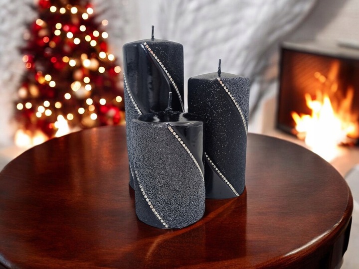 Świeca z diamencikowymi paskami dookoła to prawdziwy klejnot wśród dekoracji, który wprowadza do wnętrza elegancję i luksus. Wykonana z najwyższej jakości wosku, świeca ma klasyczny, cylindryczny kształt, który doskonale komponuje się z różnymi stylami wnętrzarskimi. Dodatkowo świeca podzielona została na 3 części, z czego każda z nich o innej fakturze. Pierwsza z nich jest klasyczna, druga zaś brokatowa, trzecia i ostatnia ozdobiona małymi kuleczkami.