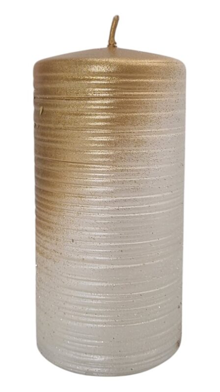 Świeca walec STARDUST 14cm złoto z drobinkami
