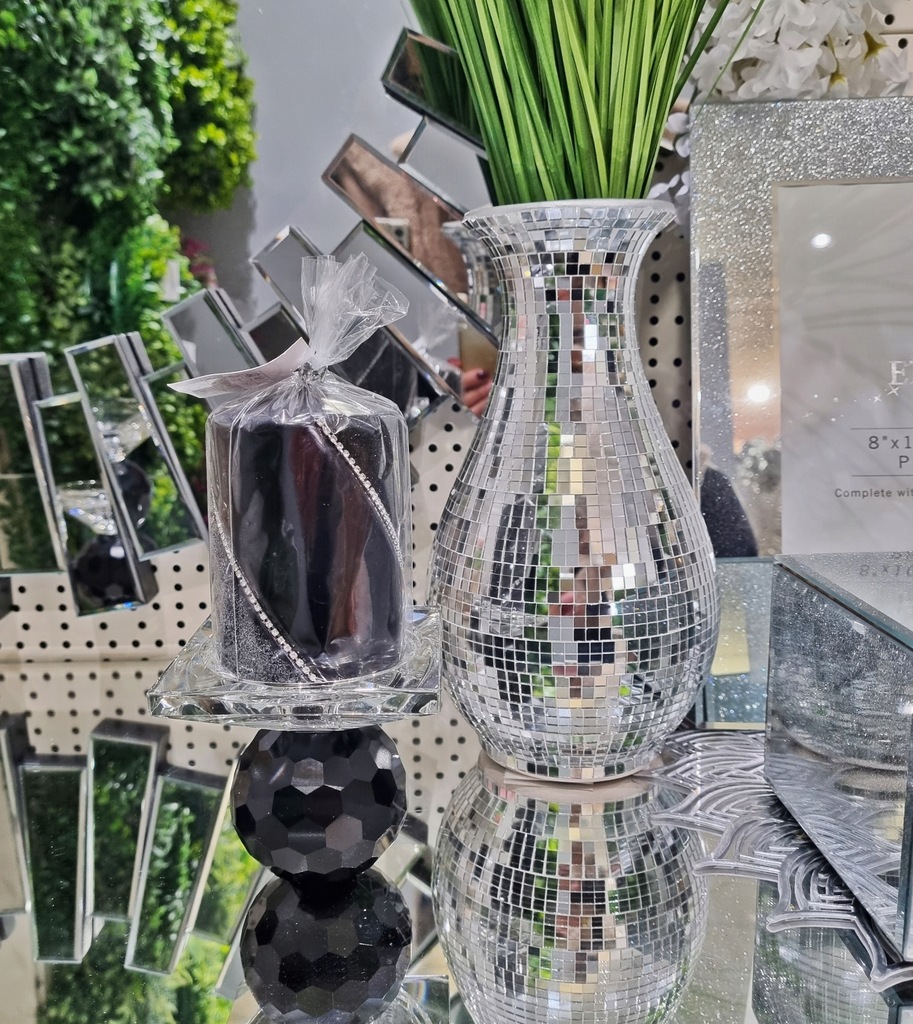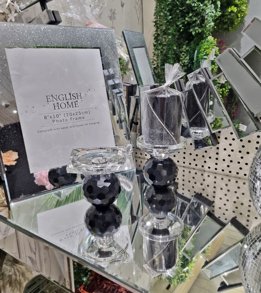 Świecznik doskonale komponuje się z innymi szklanymi i lustrzanymi dodatkami, podkreślając wyjątkowy charakter wnętrza.