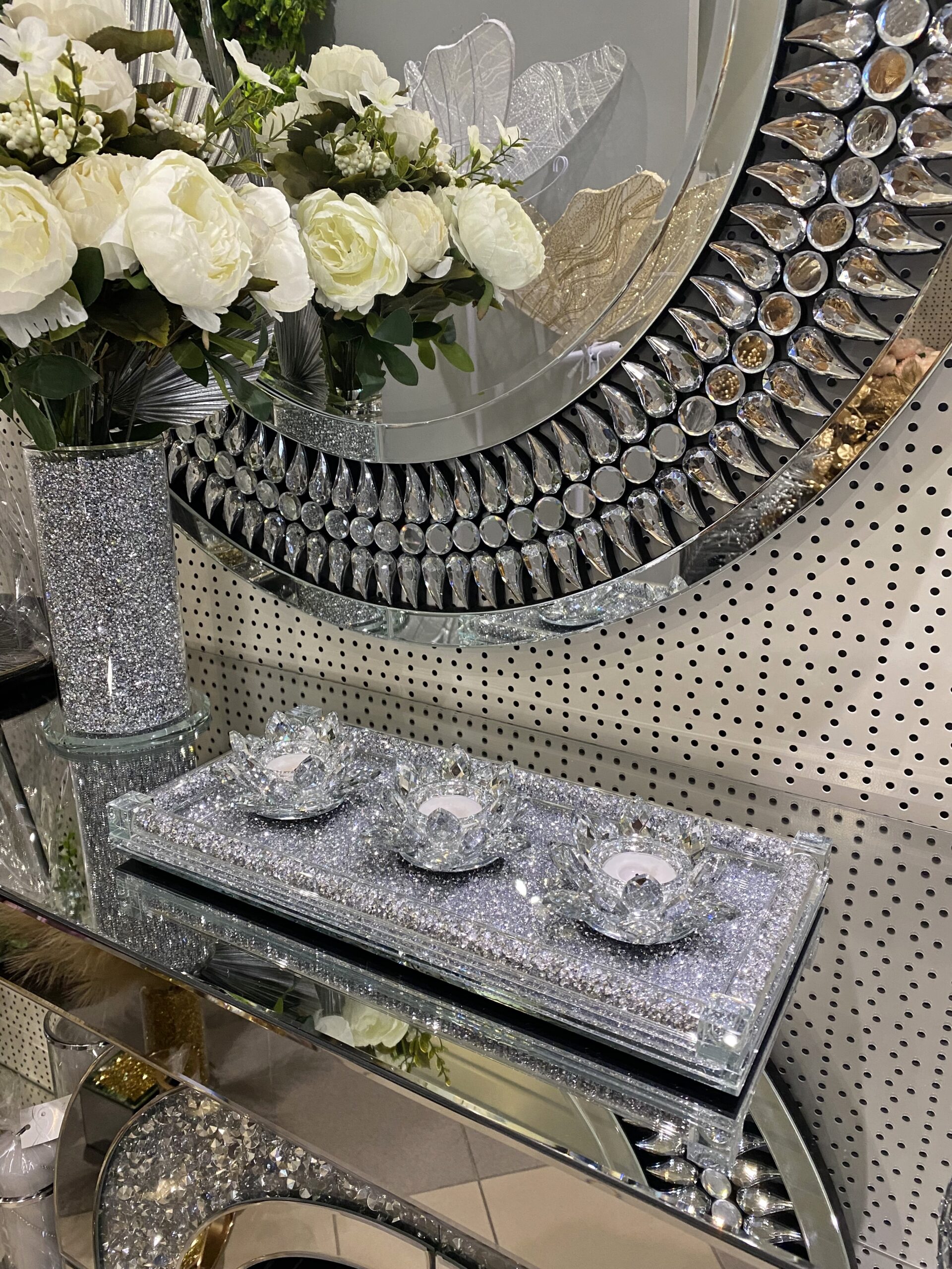 Połączenie szkła i odbicia lustrzanego nadaje niesamowity efekt luksusu i elegancji.