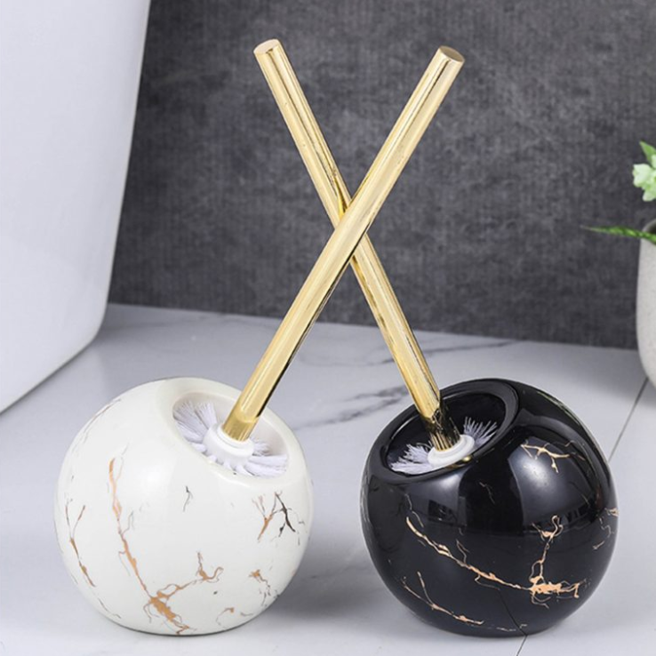 Akcesoria łazienkowe mogą być nie tylko praktyczne, ale również stylowe ! Właściwy design sprawia, że zwyczajna szczotka toaletowa staje się modnym dodatkiem dopełniającym aranżację pomieszczenia. Szczotka toaletowa z pojemnikiem w wzorze marmuru ze złotymi paskami. Produkt wykonany z materiałów wysokiej jakości, odpowiedni do stosowania w pomieszczeniach o dużej wilgotności. Włosie szczotki jest również wykonane z twardego tworzywa sztucznego. Szczotka do WC do samodzielnego skręcenia.
