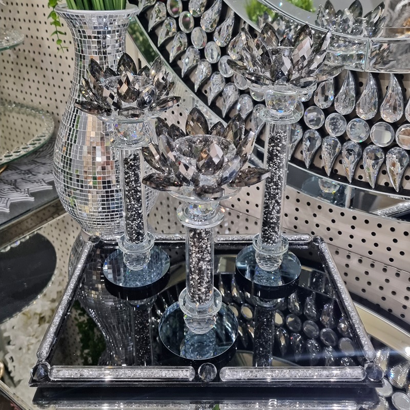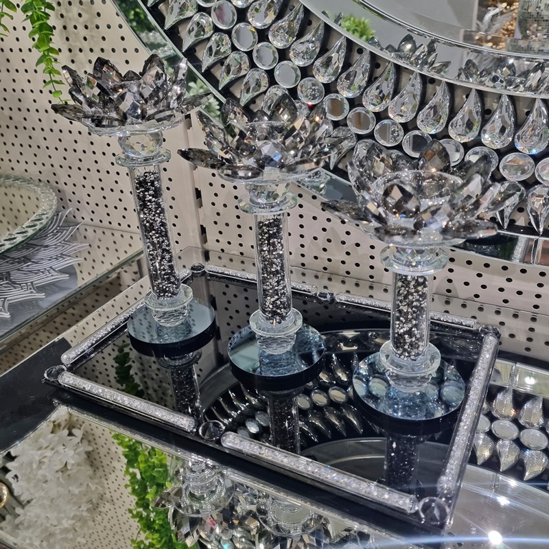 Połączenie czarnego lustra i kryształków nadaje niesamowity efekt luksusu i elegancji.