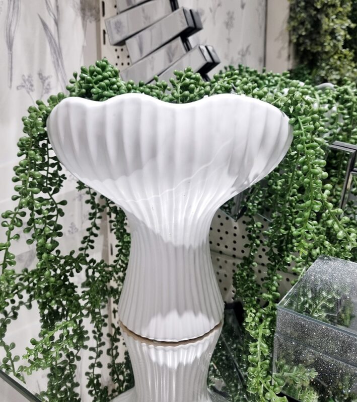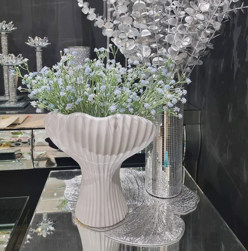 Ekskluzywny wazon wykonany z ceramiki. Oryginalny kształt doskonale komponuje się z różnymi wystrojami wnętrz . Wazon może być używany do eksponowania sztucznych kwiatów lub dekoracyjnych gałązek, ale równie dobrze może być pięknym samodzielnym elementem dekoracji.