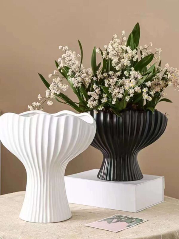 Ekskluzywny wazon wykonany z ceramiki. Oryginalny kształt doskonale komponuje się z różnymi wystrojami wnętrz . Wazon może być używany do eksponowania sztucznych kwiatów lub dekoracyjnych gałązek, ale równie dobrze może być pięknym samodzielnym elementem dekoracji.