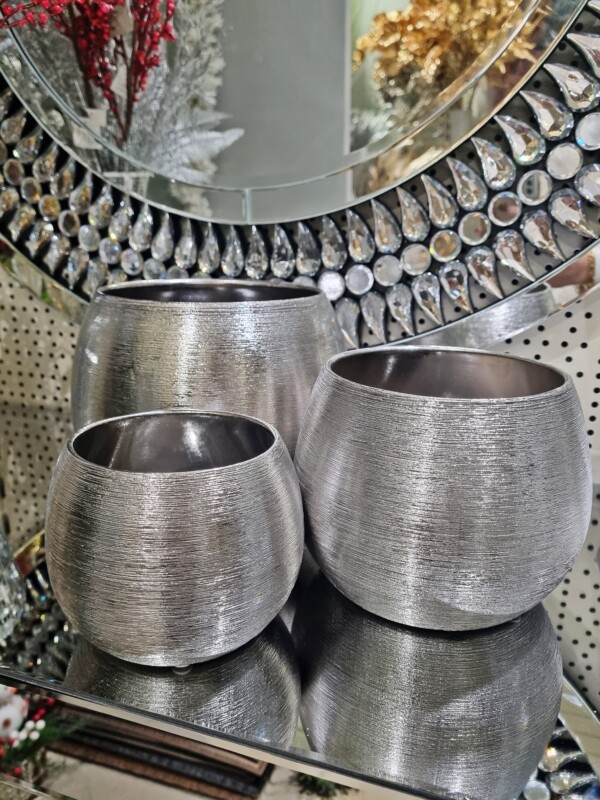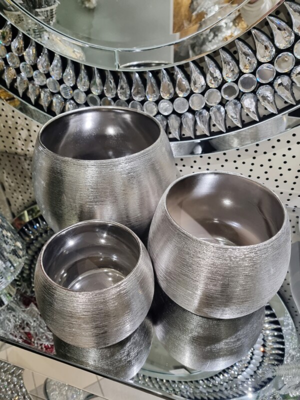 ZESTAW 3x OSŁONKA CERAMICZNA NA KWIATY K157 SREBRO