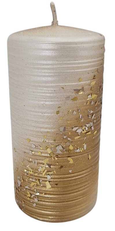 Świeca walec STARDUST 17,5cm złoto z drobinkami