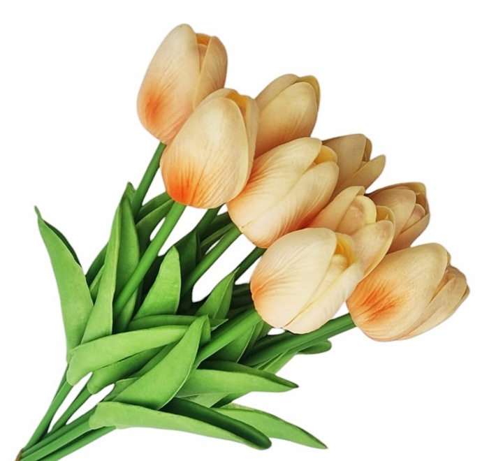 Bukiet Tulipanów Silikonowych 10 sztuk Bukiet składa się z 10 pojedynczych gałązek. Każda łodyga posiada dwa listki wykonane z pianki oraz pąk kwiatowy wykonany z pianki. Wymiary: Wysokość główki: 5cm. Wysokość całkowita: 34cm. Piękny wiosenny kolor: Cieniowany kolor pomarańczowy połączony z …